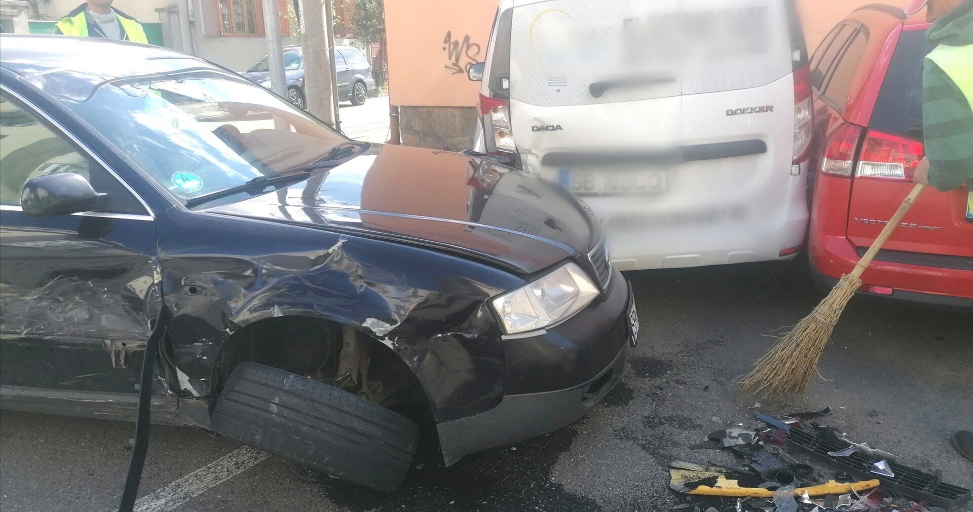 Din primele informații, două mașini au intrat în coliziune, iar în urma impactului au lovit două autoturisme parcate. În una dintre mașinile parcate, se afla un șofer în vârstă de 21 de ani, din județul Brașov. În urma impactului, acesta a fost rănit și a fost transportat la spital.