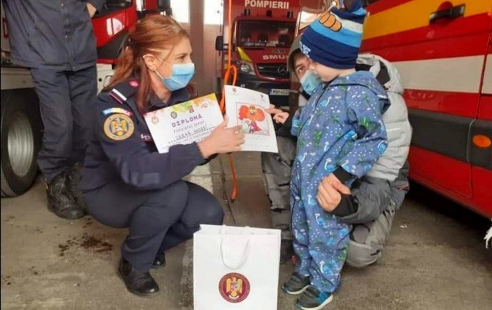 „Ascultător și atent, băiețelul ne-a împărtășit dorința lui de a deveni pompier și bucuria de a salva oamenii” – au transmis reprezentanții ISU Sibiu pe pagina lor de Facebook.