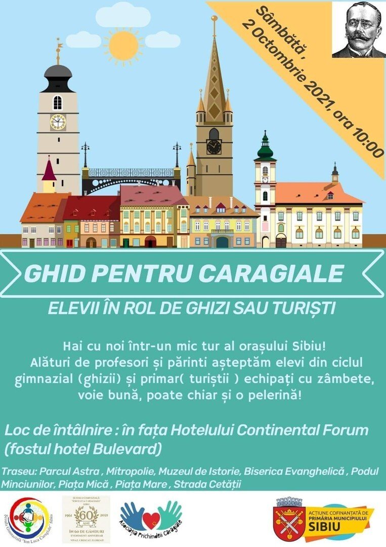Școala Gimnazială Ion Luca Caragiale Sibiu, alături de profesori și părinți organizează sâmbătă, 2 octombrie 2021, de la ora 10:00, un tur al orașului. Ghizii însă, vor fi elevii din ciclul gimnazial care îi vor însoți pe cei mici (ciclul primar) în această aventură.