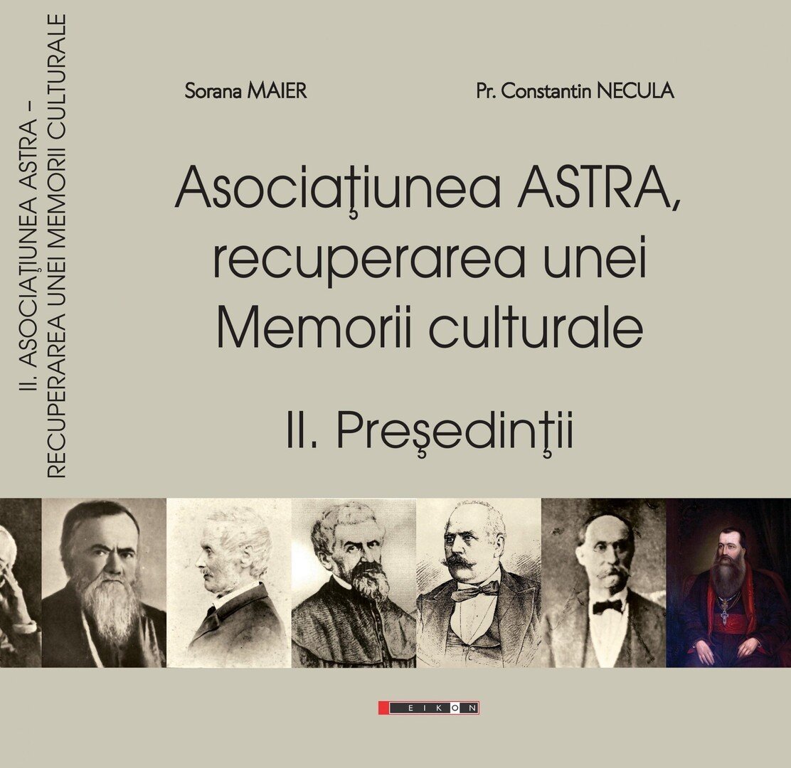 În anul în care se împlinesc 160 de ani de la înființarea Asociațiunii Transilvane pentru Literatura Română și Cultura Poporului Român, volumul Asociațiunea ASTRA – recuperarea unei Memorii culturale. II. Președinții, semnat de pr. Constantin Necula și Sorana Maier, pune în valoare viața și activitatea, precum și contribuția la evoluția culturală și socială a Sibiului a marilor personalități din Transilvania care au condus ASTRA, instituție care a avut sediul central la Sibiu. Cartea cuprinde informații și imagini despre președinții Astrei: Andrei Șaguna, Vasile Ladislau Pop, Iacob Bologa, Timotei Cipariu, George Barițiu, Ioan Micu Moldovan, Alexandru Mocsony, Iosif Sterca-Șuluțiu, Andrei Bârseanu, Vasile Goldiș, Iuliu Moldovan, Nicolae Popoviciu.