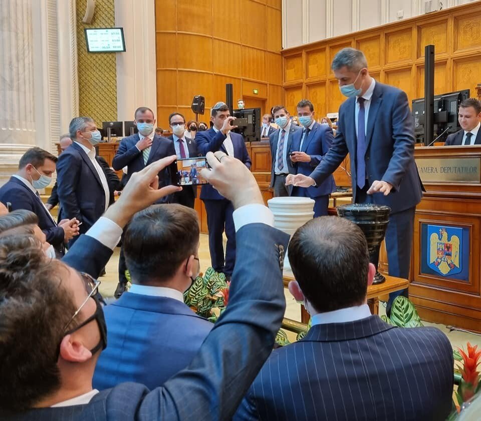 O poză făcută ieri, la moțiunea de cenzură, valorează cât o mie de cuvinte: vicepremierul și deputatul USR de Sibiu Dan Barna a votat (fiind filmat și aplaudat de aghiotantul lui, deputatul USR Bulai) moțiunea de cenzură depusă de PSD îndreptată chiar împotriva sa și a miniștrilor zero ai USR, care au distrus Economia, Sănătatea, Transporturile, Justiția, accesarea fondurilor europene, Inovarea și Cercetarea în România.