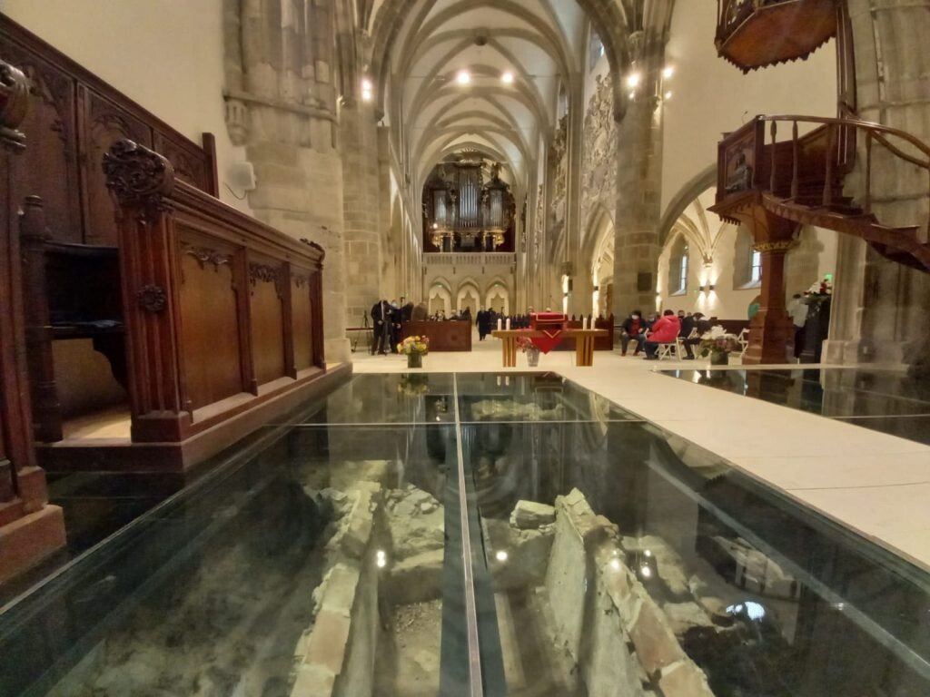 Noutatea constă în faptul că, în urma renovării, „unele vestigii arheologice sunt marcate în pardoseală şi unele şi mai importante sunt prezentate sub o sticlă in situ”.