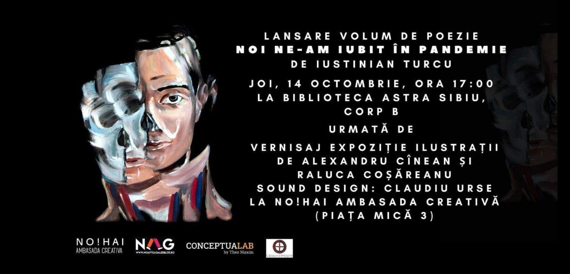 Joi, 14 octombrie, ora 17:00 va avea loc lansarea volumului de poezie „Noi ne-am iubit în pandemie de Iustinian Turcu. Evenimentul se va desfășura la Biblioteca Astra Sibiu, Corp B, etaj 5.
