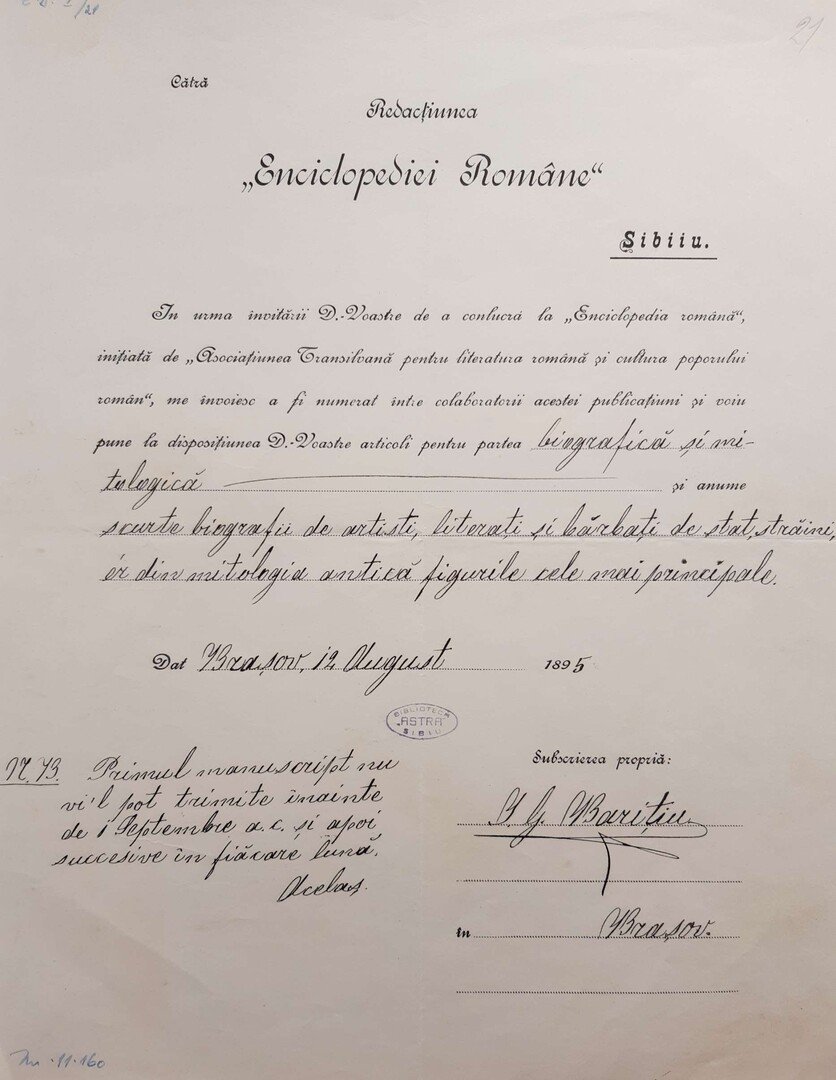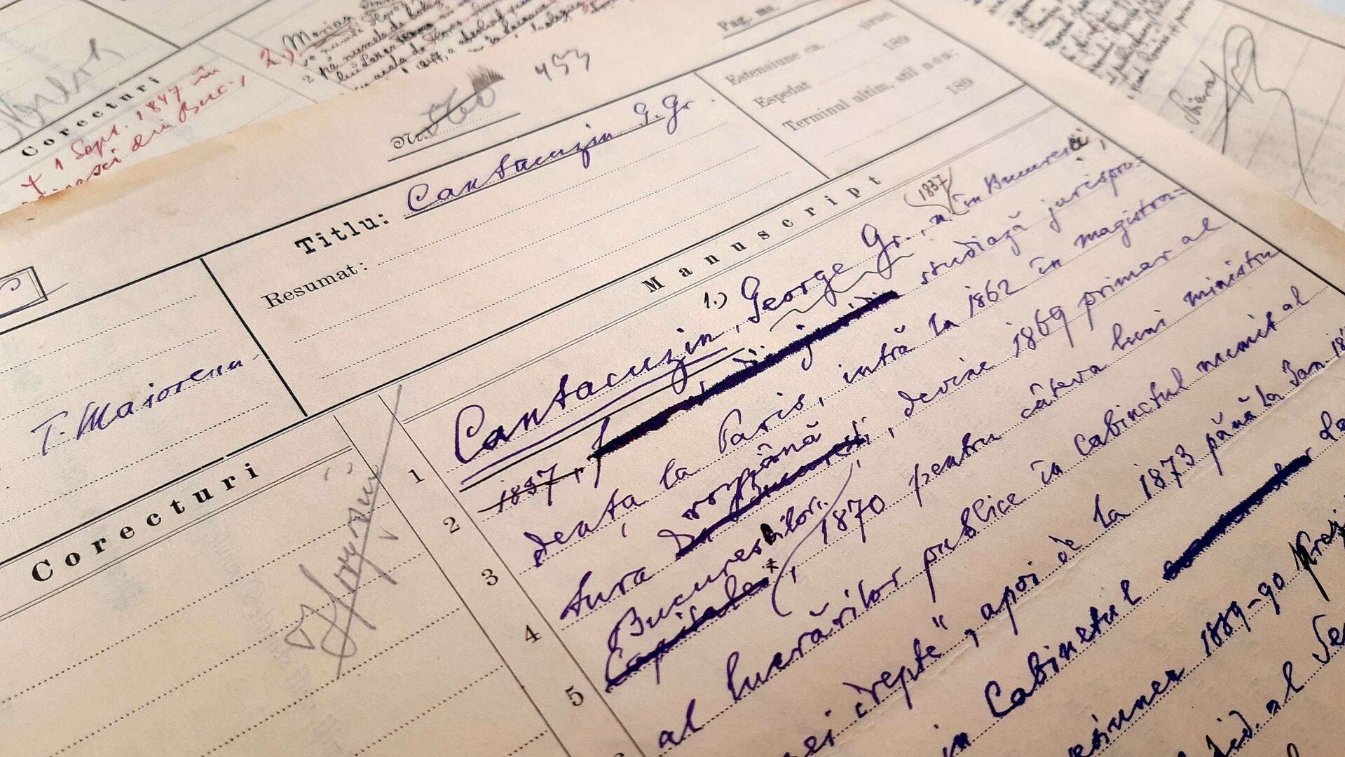 ● fișele Enciclopediei elaborate de cei care s-au angajat să își transmită contribuțiile în vederea elaborării acestei ample lucrări: Dimitrie Onciu – Istoria Făgărașului, Augustin Bunea – biografia lui Ioan Inocențiu Micu Klein, Ion G. Sbiera – Familia Hurmuzaki, Ilarion Pușcariu – Sava Brancovici, Titu Maiorescu – George Grigore Cantacuzino și Petru Mavrogeni.