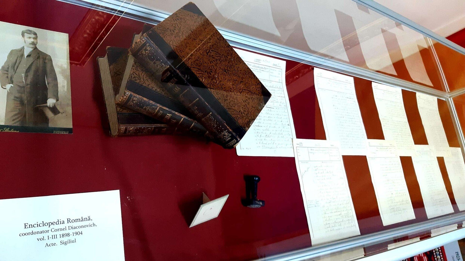 De asemenea, în cadrul expoziției, sunt prezentate cele trei tomuri ale Enciclopediei Române, lucrare editată în perioada 1898–1904, sub coordonarea publicistului Corneliu Diaconovich (1856–1923), prim-secretar al ASTREI, director al revistei „Transilvania” și prestigioasă personalitate cu activitate intensă în sfera culturală, economică și politică a vremii. Amplul proiect editorial a fost realizat cu susținerea voluntară a membrilor Academiei Române și a numeroși contributori/ colaboratori: cadre didactice, oameni de știință, scriitori, reprezentanți ai bisericii, istorici, diplomați, militari. Lucrarea în original a fost donată bibliotecii publice sibiene de către prof. univ. dr. Dumitru Acu, președinte al actualei Asociațiuni ASTRA.