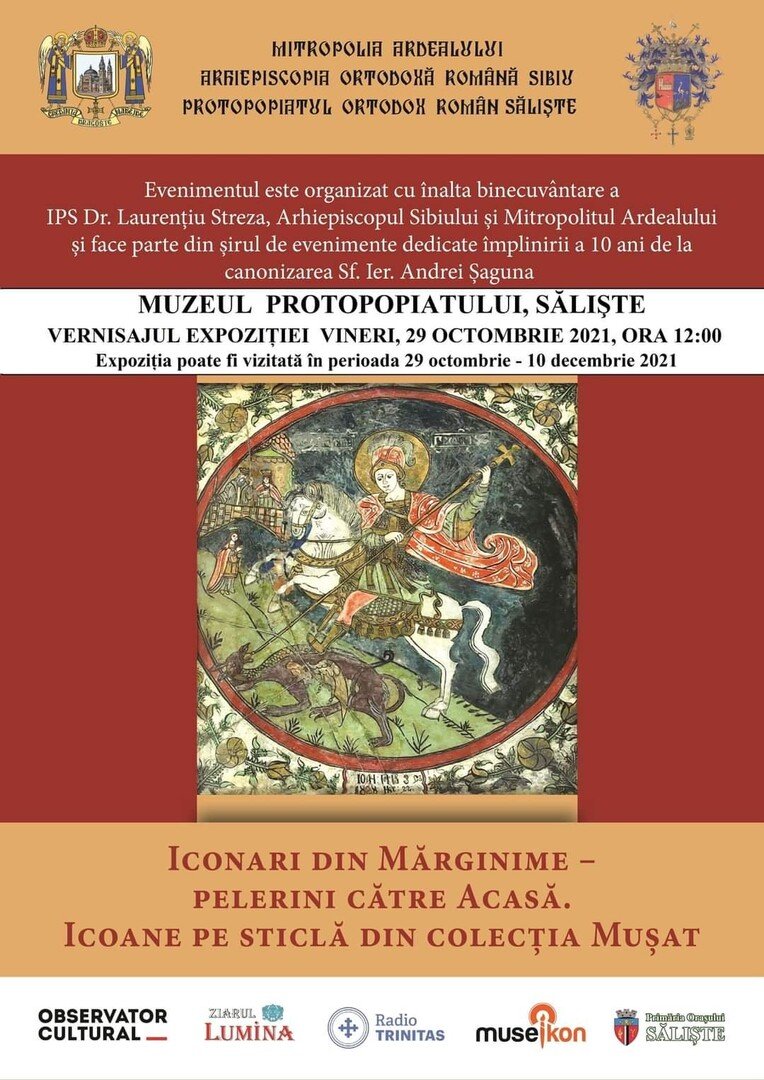 Protopopiatul Ortodox Român Săliște organizează vineri, 29 octombrie 2021, ora 12, vernisajul expoziției Iconari din Mărginime – pelerini către Acasă. Icoane pe sticlă din colecția