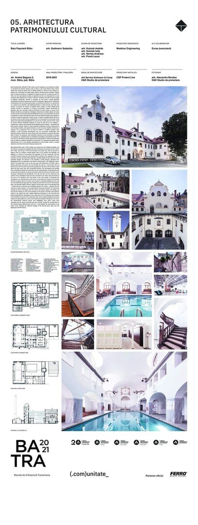 Recenta reabilitare datorată arhitectului Guttmann Szabolcs și echipei sale a vizat recuperarea valorii arhitecturale a acestei clădiri de patrimoniu, un melanj de neobaroc și Jugendstil de sfârșit de secol XIX și început de secol XX. Prezența Băii Populare Sibiu pe lista nominalizărilor din acest an, alături de alte clădiri de referință patrimonială din țară, primește, cu această ocazie, o nouă recunoaștere culturală și identitară, pentru care îi mulțumim arhitectului Guttmann și echipei de proiectare K&K Studio.