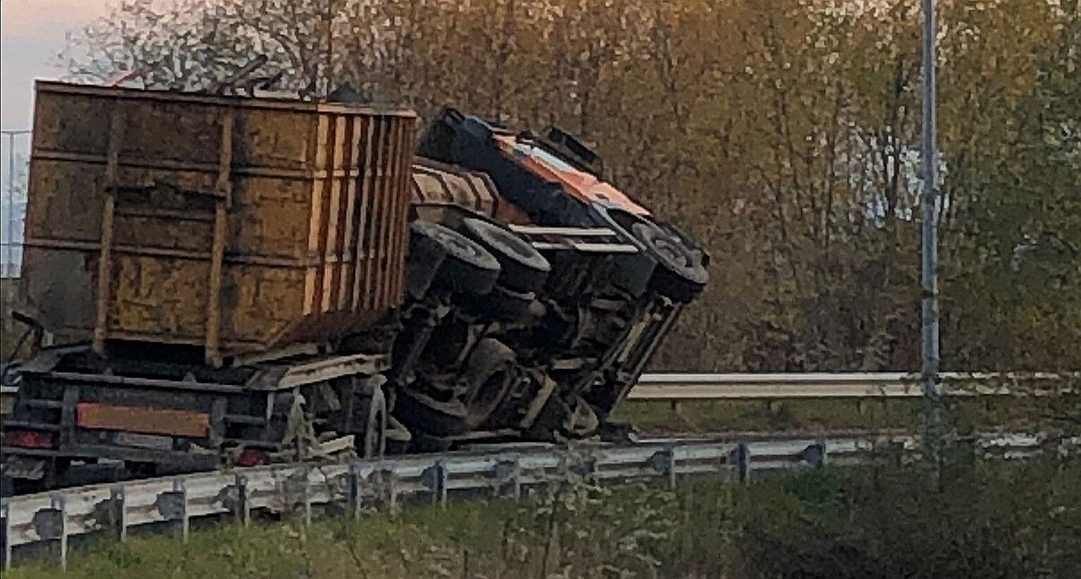 Conform primelor informații, șoferul unui autocamion nu a adaptat viteza la condițiile de drum și s-a răsturnat pe banda de urcare pe autostrada A1. Din fericire, au rezultat doar pagube materiale.
