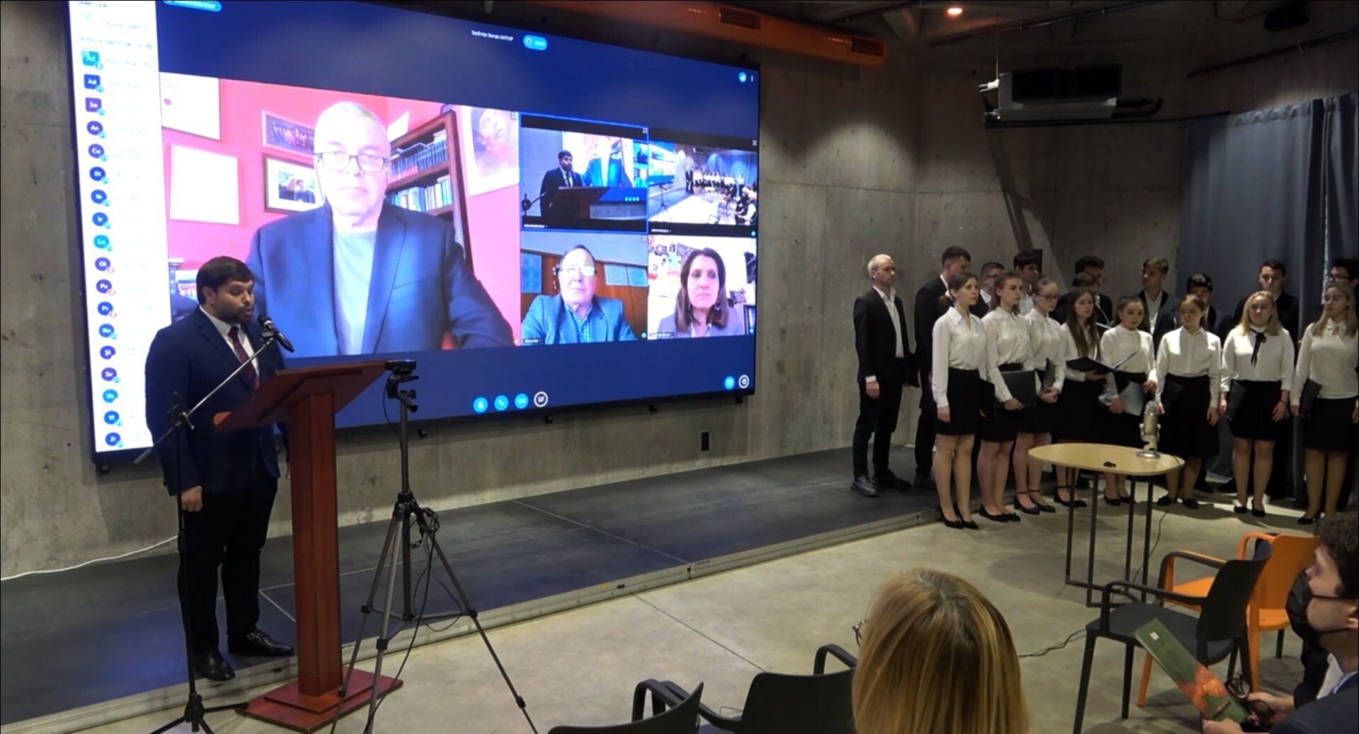 Prof. univ. dr. Svetlana Târţău, decanul Facultății de Artă Teatrală, Coregrafică și Multimedia, prof. univ. dr. Angelina Roșca, maestru în Artă, șefa catedrei Studii teatrale și scenografie, alături de alte personalități ale mediului academic din Republica Moldova au fost prezenți la ceremonie. Gazda ceremoniei a fost lectorul universitar Ianos Petrașcu.