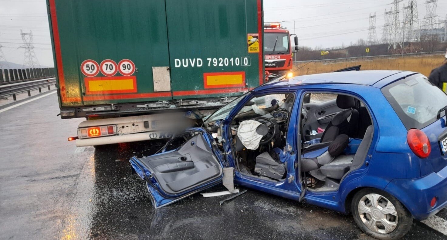 Două autocamioane și o mașină au intrat în coliziune, cel puțin două persoane fiind rănite și transportate la spital. În prezent, traficul se desfășoară îngreunat , pe banda a doua.
