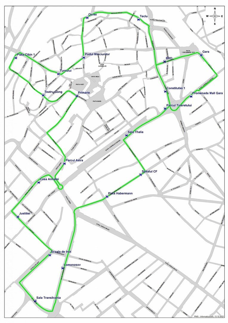 De luni, 13 decembrie, microbuzele electrice care circulă pe Linia Verde ajung în încă 7 stații din oraș, față de stațiile pe care au circulat inițial și acoperă următorul traseu:
