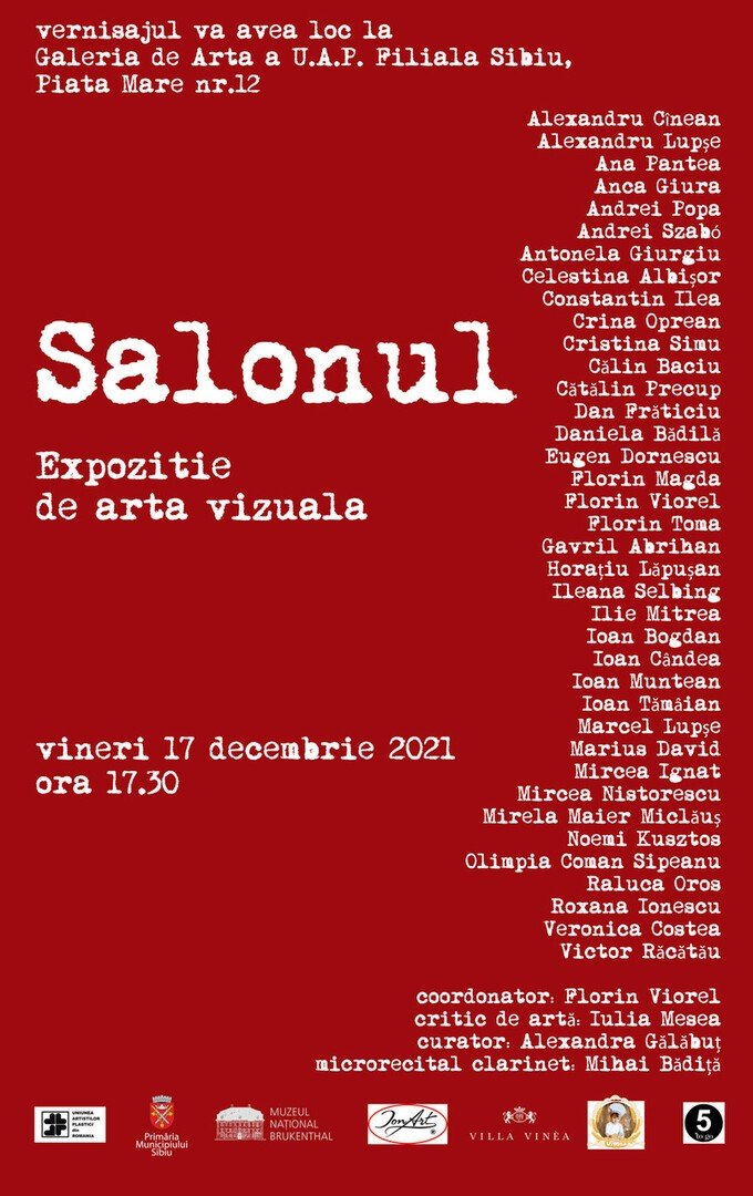Eveniment tradițional pentru iubitorii de artă din Sibiu, Salonul de Iarnă al Uniunii Artiștilor Plastici contribuie la bogata atmosferă de sărbători printr-o selecție variată de stiluri și tehnici creative, oferite în dar publicului local sau vizitator: peisaje idilice, compoziții în culori calde, surprinzătoare asamblaje din metal și hârtie texturată, sculpturi impresionante în diferite medii (sticlă, lemn, piatră, metal), obiecte de artă textilă și decorativă, toate perfecte pentru a da căldură oricărui tip de interior, menite să prelungească atmosfera de sărbătoare în fiecare zi a anului.