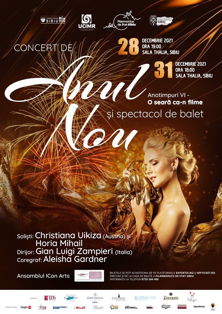 Solista de jazz Christiana Uikiza, pianistul Horia Mihail, dirijorul Gian Luigi Zampieri şi Orchestra de cameră ICon Arts sunt artiştii invitaţi pe scena Concertului de Anul Nou de la Sibiu, organizat de Asociația „Uniunea de Creație Interpretativă a Muzicienilor din România”, în parteneriat cu Filarmonica de Stat Sibiu. Lor li se vor alătura balerini ai Teatrului de Balet Sibiu sub îndrumarea coregrafei Aleisha Gardner. Evenimentul este programat pe 31 decembrie, ora 18.00, la Sala Thalia.