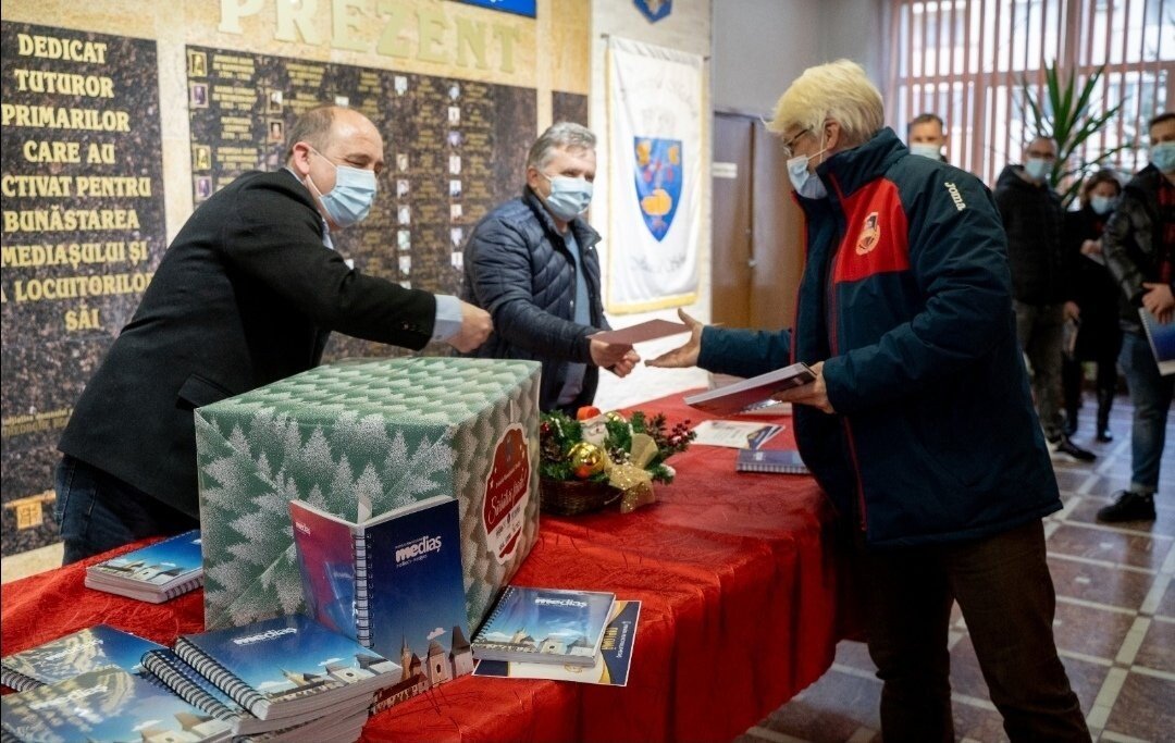 La evenimentul desfășurat în prezența primarului Gheorghe Roman și a altor reprezentanți ai autorității publice locale, au fost recompensați 60 de voluntari medieșeni, care au primit diplome, dar și cadouri oferite de către municipalitate, în semn de recunoștință pentru implicarea deosebită pe care au avut-o de-a lungul anului 2021.