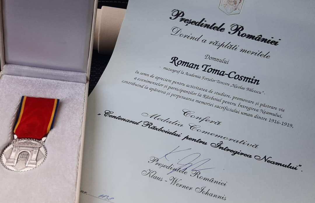 Dr. Toma-Cosmin Roman, muzeograful Academiei Forţelor Terestre „Nicolae Bălcescu” din Sibiu, a fost decorat cu Medalia Comemorativă „Centenarul Războiului pentru Întregirea Neamului” de către Președintele României, Klaus-Werner Iohannis.