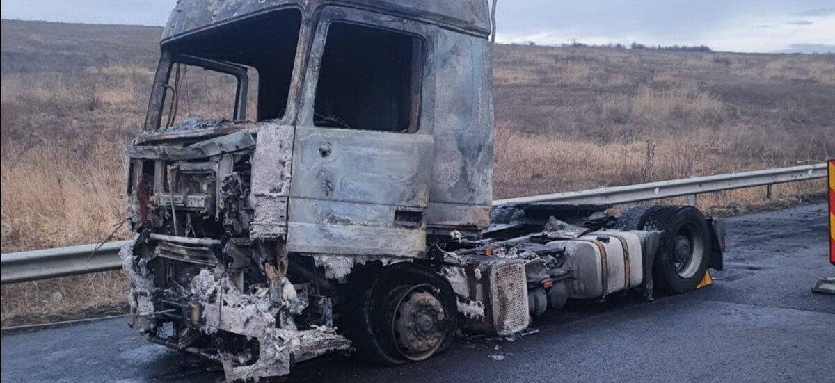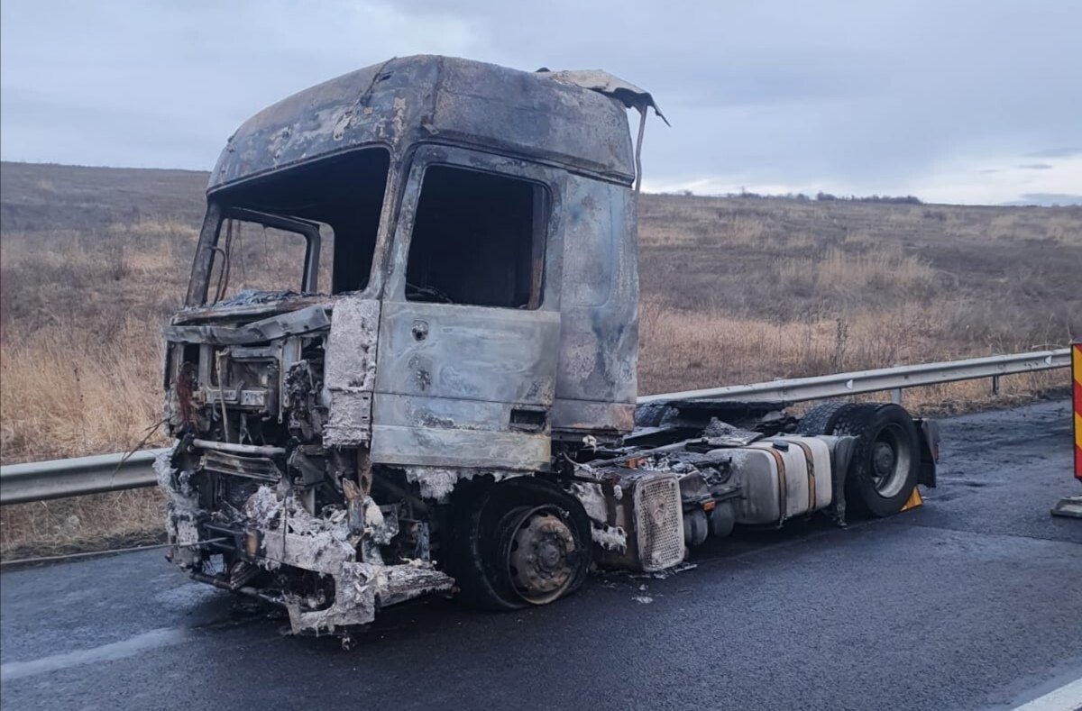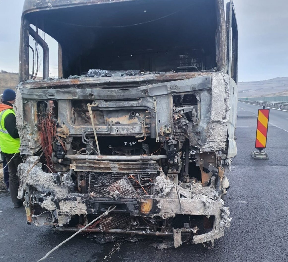 Cauza probabilă de izbucnire a incendiului a fost determinată de producerea unui scurtcircuit electric la compartimentul motor al capului tractor.