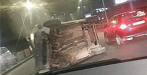 Din primele date, șoferul unei mașini nu a adaptat viteza de deplasare la condițiile de drum și a intrat în coliziune cu pilonii ce delimitau sensurile de mers. În urma impactului, mașina a ricoșat în parapetul de protecție, după care, potrivit martorilor, s-ar fi răsturnat. Aceasta a fost repusă pe roți de către forțele de ordine sosite, dar și de către trecători.