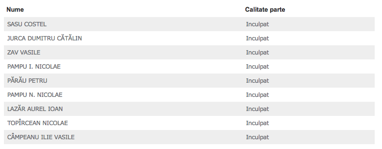 Sasu Costel, Jurca Dumitru Cătăin, Zav Vasile, Pampu I. Nicolae, Părău Petru, Pampu N. Nicolae, Lazăr Aurel, Topîrcean Nicolae și Câmpean Ilie Vasie sunt nouă inculpați din dosaru „mafia lemnului” din județul Sibiu.