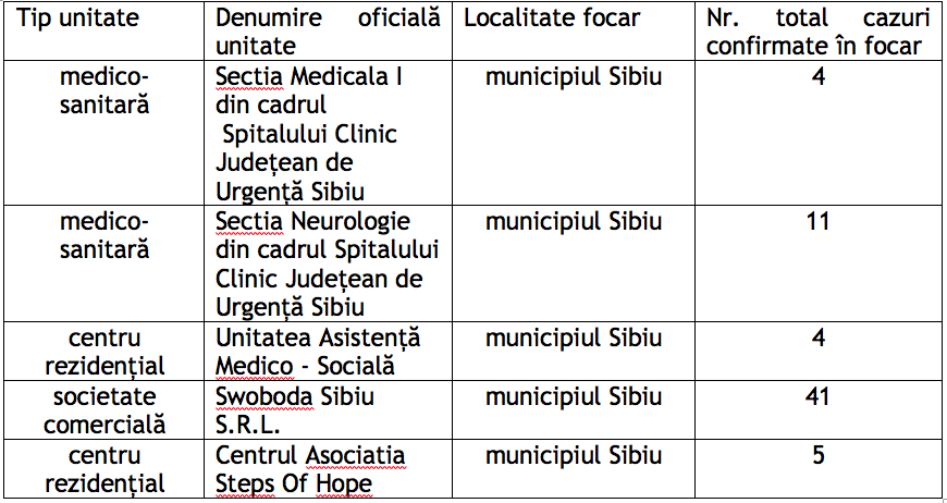 Un număr de 41 de angajați ai fabricii Swoboda au fost depistați pozitiv cu COVID. Restul focarelor au câte un număr relativ mic de persoane infectate.