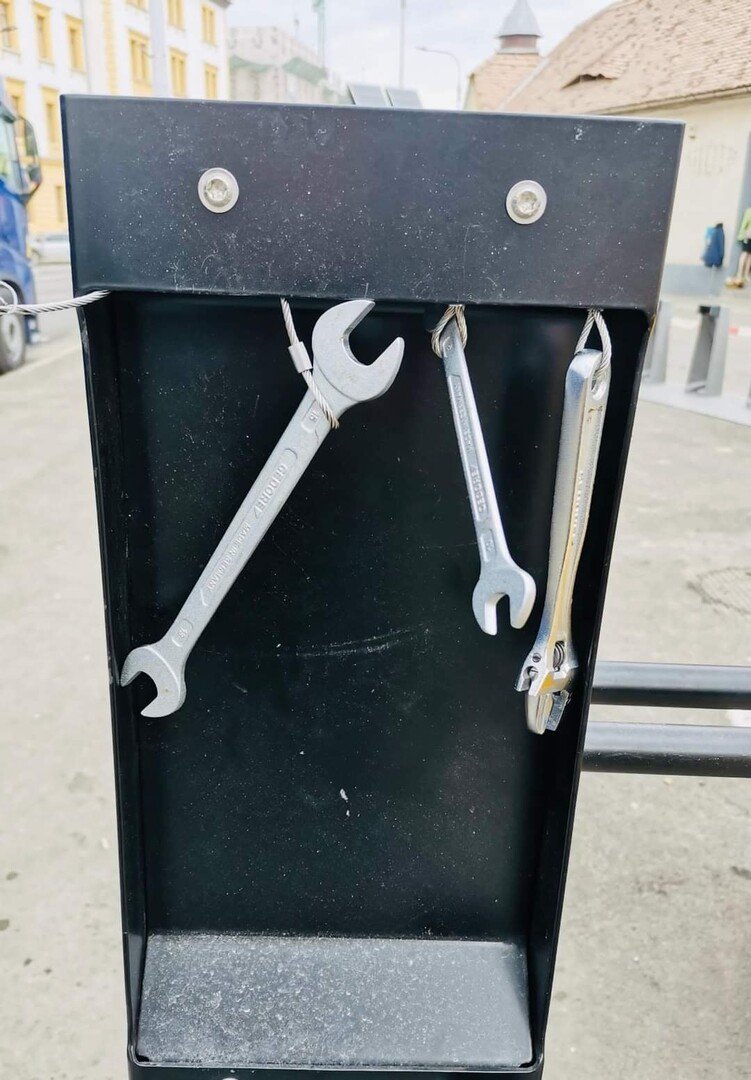 Cele 10 puncte de reparații, destinate oricărui tip de bicicletă, sunt dotate cu truse de scule și pompe de aer, pentru reparații de urgență. Totuși, este trist să vedem că după doar câteva săptămâni, sculele de calitate superioară, deci destul de costisitoare, au fost furate.