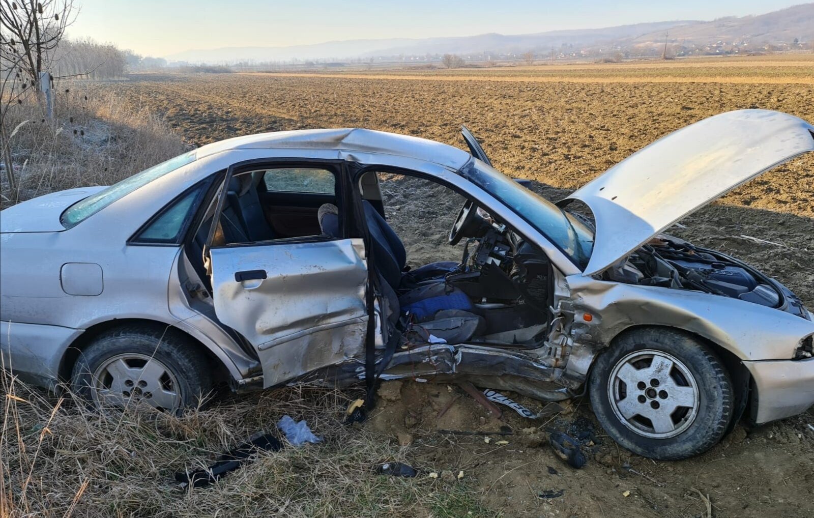 În urma impactului, șoferul și pasagera din mașina înmatriculată în județul Sibiu au fost răniți și transportați la spital.