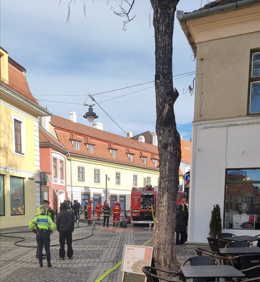 „Incendiu manifestat în depozitul unui magazin produse alimentare situat în municipiul Sibiu, str. Avram Iancu. Pompierii militari ai Detasamentului Sibiu au intervenit de urgență cu 2 autospeciale de stingere și un echipaj SMURD. Forțele sosite la fața locului au procedat localizarea și lichidarea incendiului concomitent cu ventilarea spațiului și a fumului propagat în magazin situat în fața depozitului. Clienții aflați în magazin s-au autoevacuat înainte de sosirea forțelor.