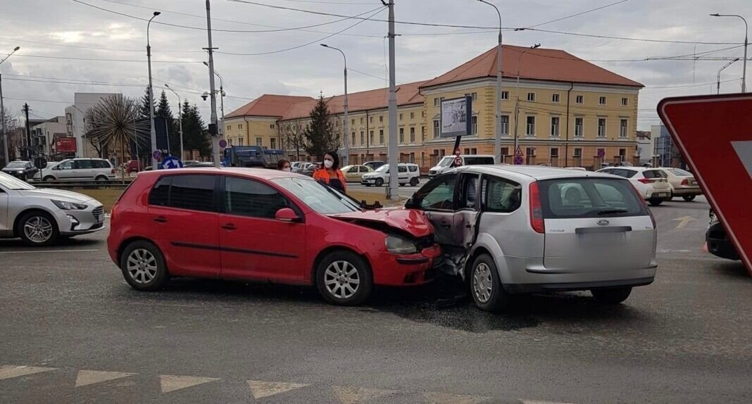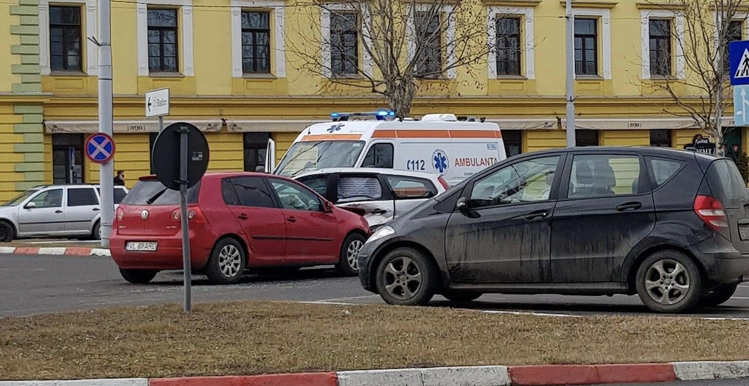 Un accident rutier între două masini s-a produs în sensul giratoriu de pe Calea Dumbrăvii, la intersecția cu Bulevardul Mihai Viteazu.