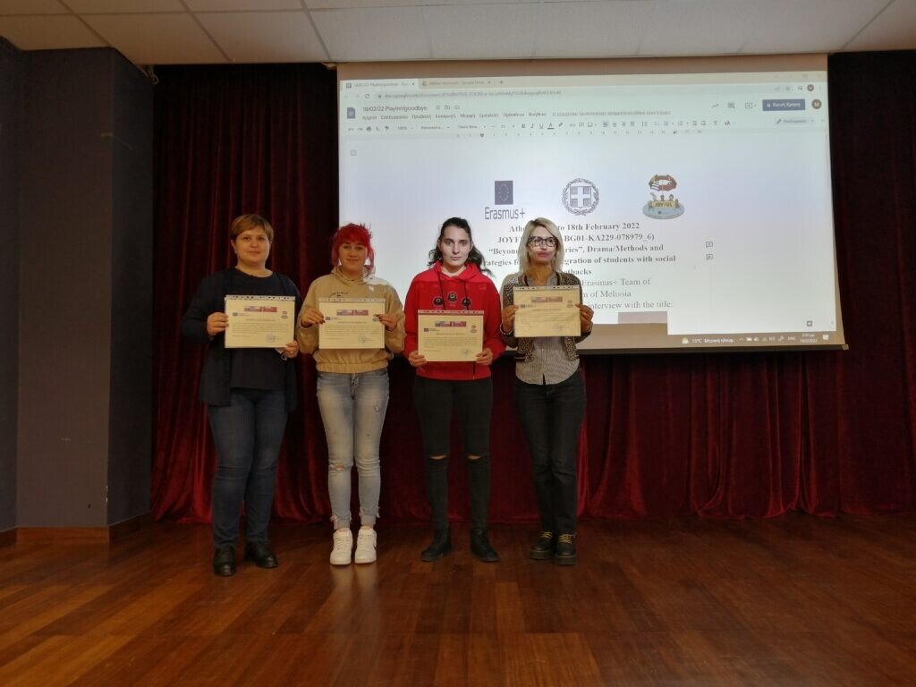 În săptămâna 14-18 februarie 2022, elevele Centrului Școlar de Educație Incluzivă Turnu Roșu, Otvos-Huciu Antonia-Grisell și Furdui Nicoleta, însoțite de profesorii Streinu-Buta Elena-Alina și Stan Daniela s-au deplasat în Atena, la școala 1st GYM OF MELISSI, unde au participat la cea de-a doua activitate transnațională de formare de grupuri de elevi, pe termen scurt, a parteneriatului strategic pentru susținerea schimbului de bune practici în domeniul școlar.