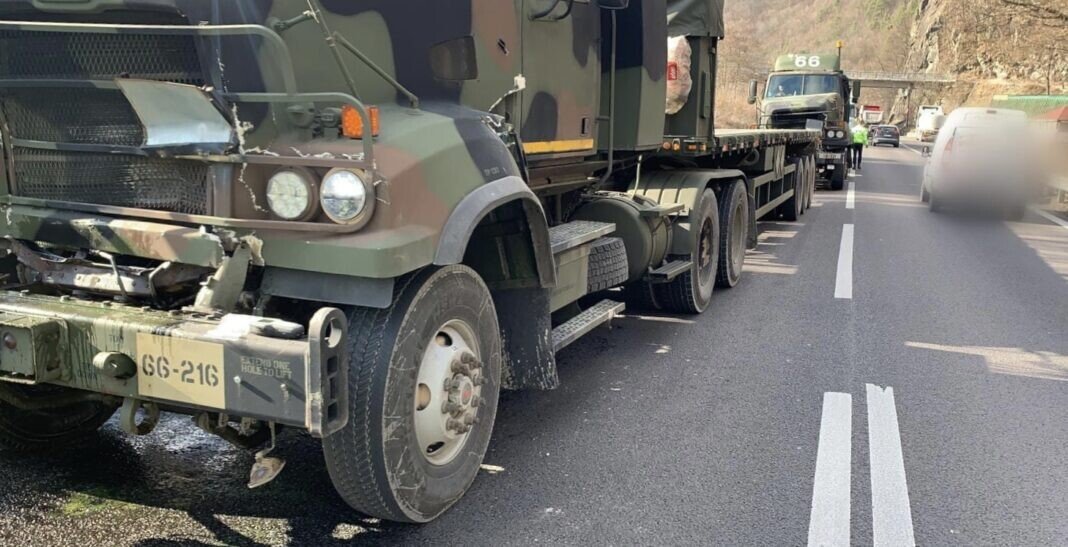 FOTO: Convoi NATO blocat pe Valea Oltului. A făcut accident