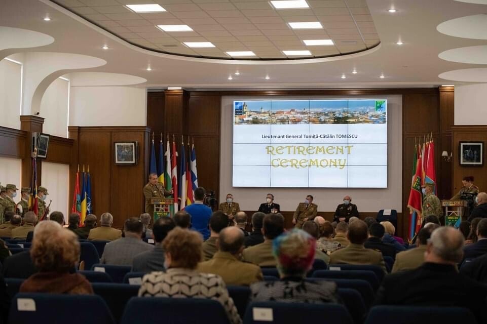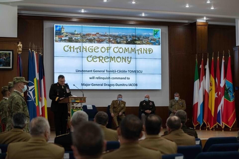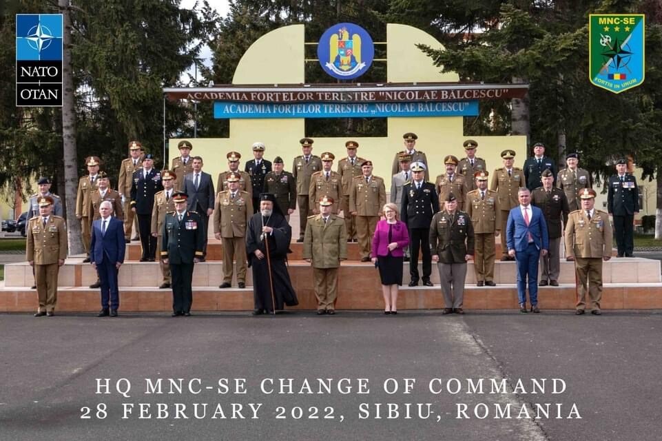 Ieri, 28 Februarie 2022, la sediul Comandamentului Corpului Multinațional de Sud-Est din Sibiu a avut loc ceremonia militară de schimbare a comenzii, noul comandant al structurii fiind generalul-maior Dragoș Iacob. În același cadru, a avut loc și ceremonia de trecere în rezervă a generalului-locotenent Tomiță-Cătălin Tomescu. Primarul Astrid Fodor a participat la aceste momente solemne: