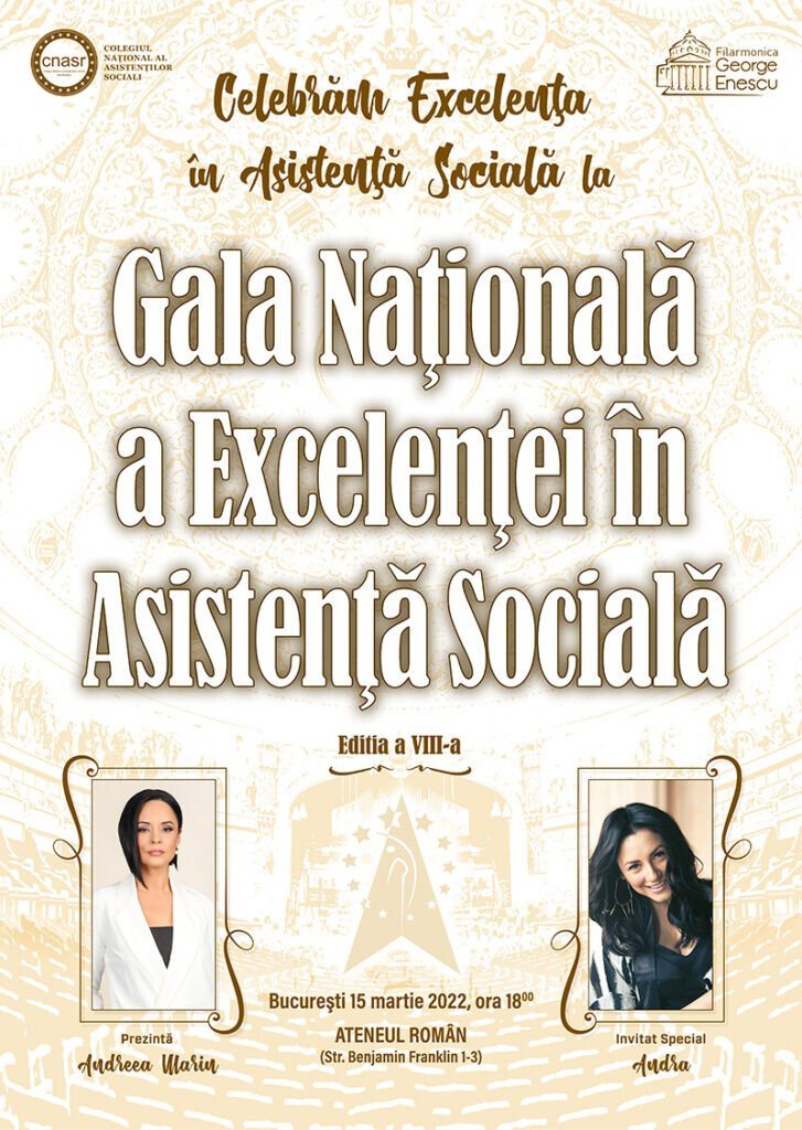 Marți, 15 martie 2022, va avea loc la Ateneul Român din București, Gala Națională a Excelenței în Asistență Socială, eveniment de înaltă ținută devenit o tradiție pentru toți cei care activează în domeniul social.