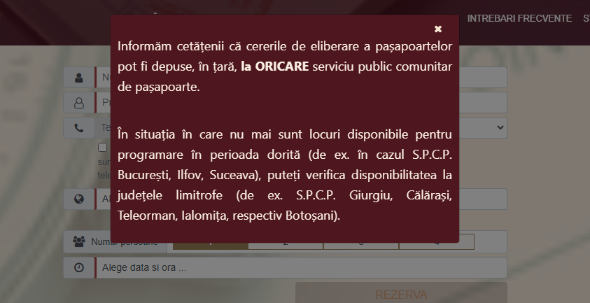 Pe prima pagină a site-ul de programări online pentru paşapoarte scrie: