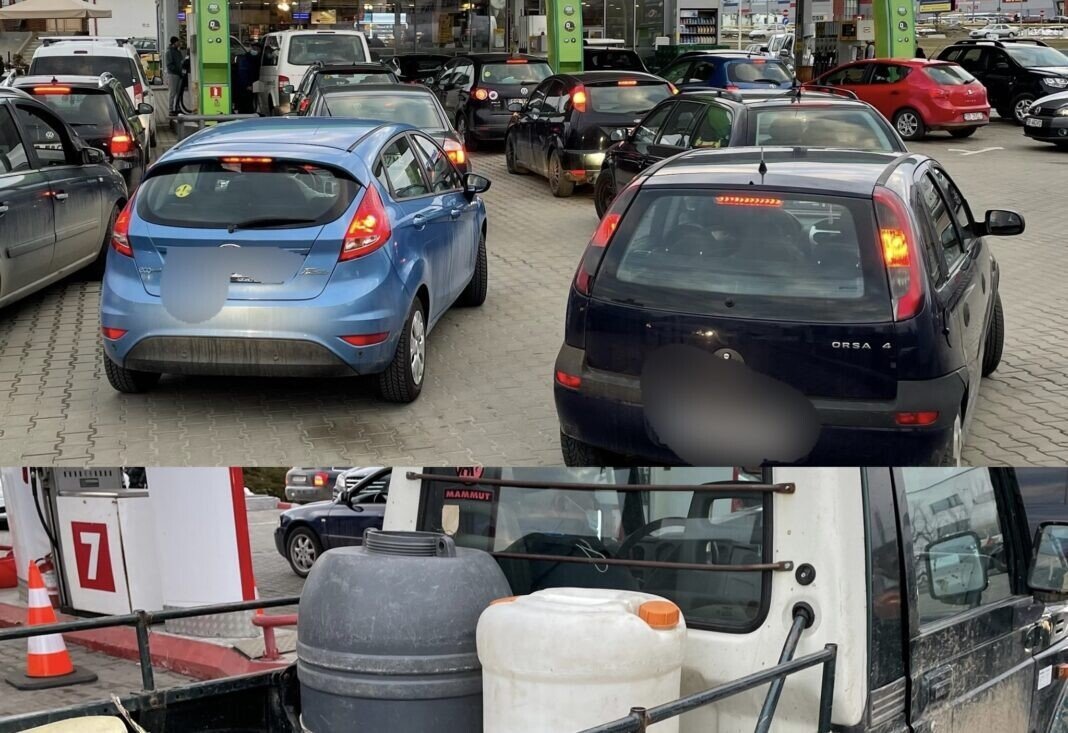 Zeci de șoferi au plecat de acasă „înarmați” cu canistre sau chiar bidoane de plastic pentru a procura cât mai mult combustibil. Timpul de așteptare la pompă este de aproximativ 30-40 de minute, cozile de mașini fiind până în arterele principale, formându-se astfel ambuteiaje mari.