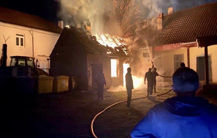 FOTO: Poșta din Alțâna, la un pas să fie mistuită de flăcări