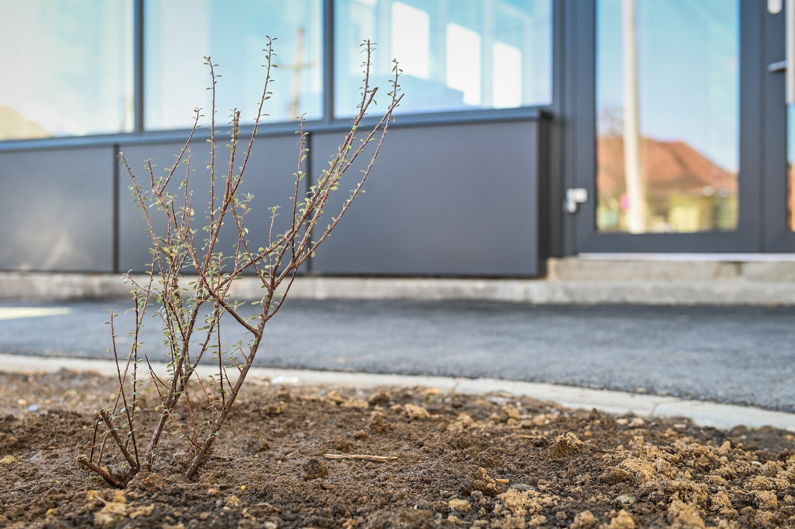 Lucrările de infrastructură din cartierul Ștrand se apropie de finalizare astfel că, în zonele reabilitate deja, Primăria Sibiu a început plantările de arbori, arbuști și iarbă.