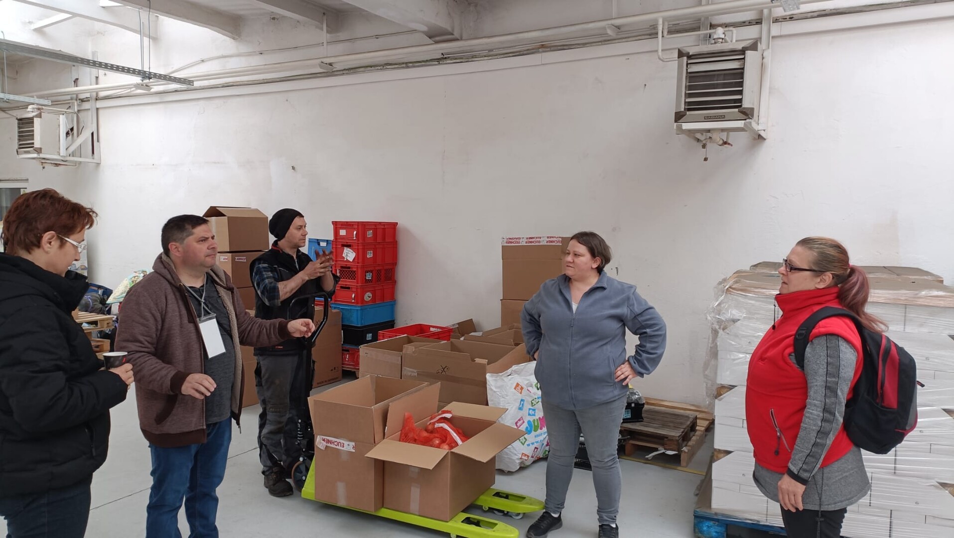 Sorin Boica a găsit deschidere la firma Euchner din Cisnădie datorită angajaţilor de aici. Directorul Axente Neagu şi Cati Kacso l-au primit cu braţele deschise. Mai mult, îl ajută şi voluntar. Am regăsit-o pe Cati sâmbătă cărând baxuri de conserve, alături de alţi voluntari. Printre voluntarii implicaţi în sortarea unui lot de haine primite erau şi două tinere de liceu din Cisnădie. Ana Comănescu şi Antonia Atanasoae sunt eleve la Liceul Gundisch din Cisnădie. Sâmbătă sortau haine pe categorii de vârstă. „Ne-am mai implicat voluntar în diferite acţiuni. Aici venim când este nevoie” ne-a spus Ana. Antonia ţinea şi evidenţa produselor distribuite din depozit către diferite organizaţii „Vreau să fac un bine oamenilor în nevoie. Sunt o fire empatică” ne-a mărturisit motivaţia ei, Antonia.
