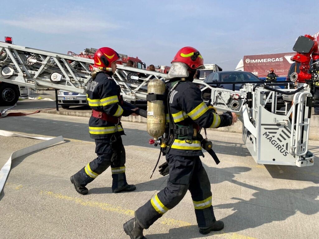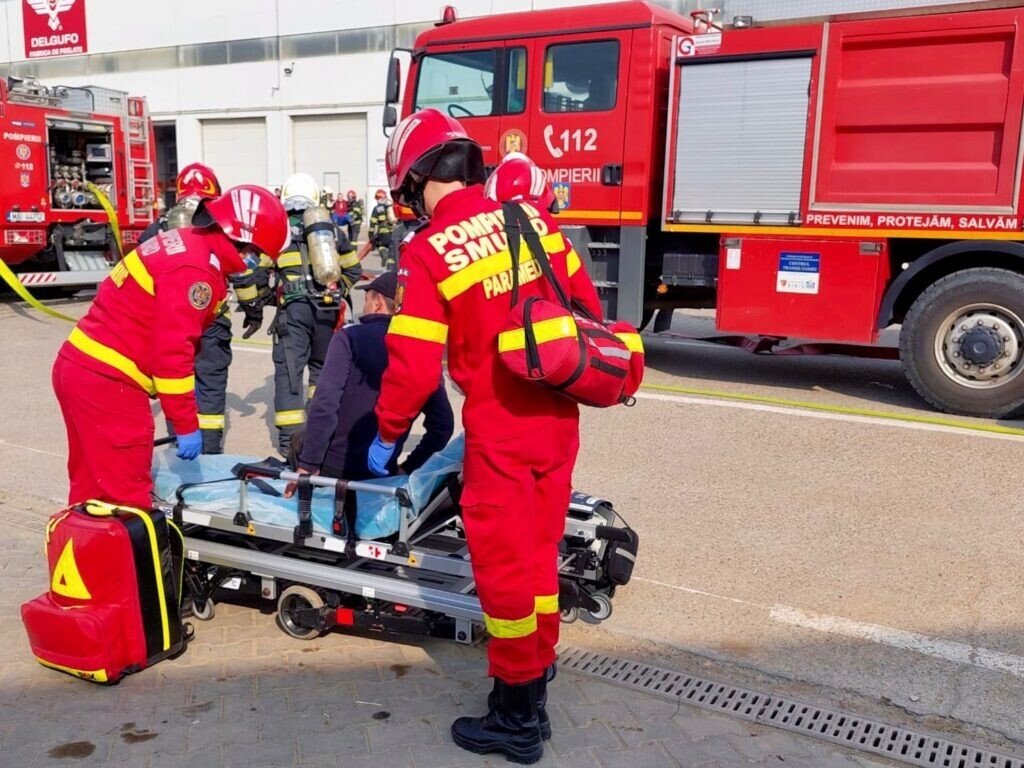 La acest exercițiu au participat peste 25 de pompieri militari și paramedici cu 5 autospeciale ( stingere cu apă și spumă, descarcerare și de asistență medicală specializată).