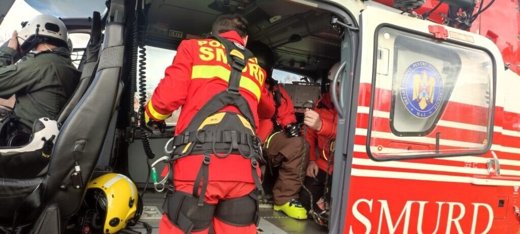 ACTUALIZARE : Cinci salvamontiști au fost duși de către elicopter la aproximativ o oră de mers față de victimă.