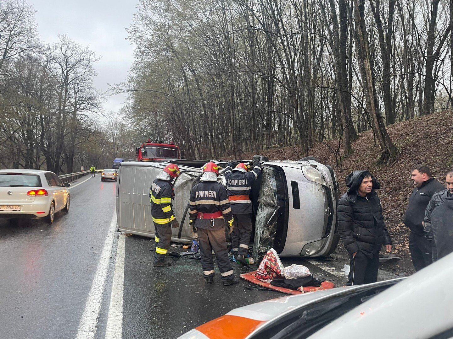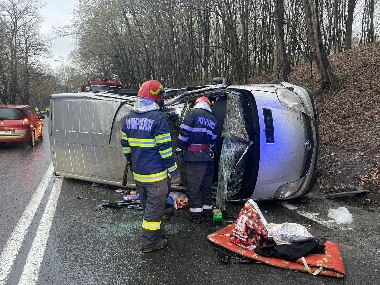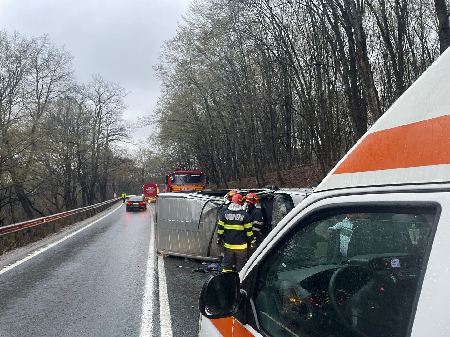 Din primele cercetări efectuate rezultă că șoferul unui microbuz destinat transportului de persoane, condus pe DN 1, direcția Sibiu – Brașov, la km. 292+500m, ar fi pierdut controlul direcției de deplasare, răsturnându-se pe carosabil, pe sensul opus de mers. Conducător auto este un tânăr în vârstă de 25 de ani, din județul Mureș. Microbuzul cu o capacitate de 8+1, se aflau 8 pasageri, adulți, și conducătorul auto.