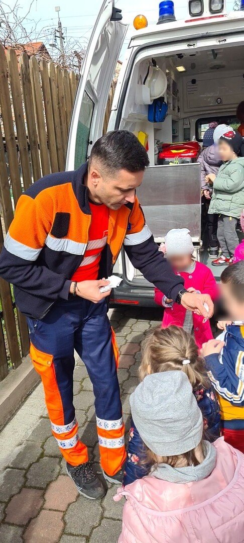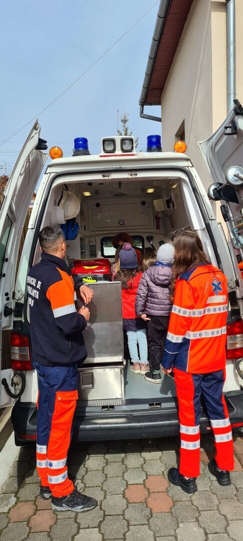Copiii grădiniței au fost surprinși să afle despre cât de importante sunt serviciile de urgență din orașul nostru. Toți copiii au ascultat cu atenție mesajele importante ale echipei din cadrul Compartimentului de Analiză și Prevenire a Criminalității, din cadrul Inspectoratului de Poliție Județean Sibiu, precum și ale echipei Serviciului de Ambulanță Județean Sibiu cu care au discutat despre când să solicite ajutorul acestora, rolul echipamentelor din dotare, precum și cum putem rămâne în siguranță și sănătoși. Copiii au avut oportunitatea de a urca și explora interiorul ambulanței, să testeze scaunele din față, pretinzând că sunt adevărații salvatori.