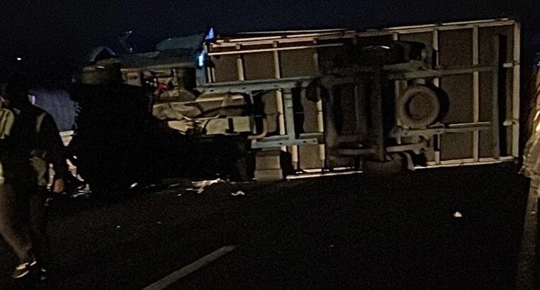 Din primele cercetări efectuate la fața locului se pare că s-a produs o coliziune între un camion de 7,5 t și un autoturism, în urma căruia a rezultat rănirea unei persoane. Camionul este răsturnat pe partea carosabilă, între benzile de mers.
