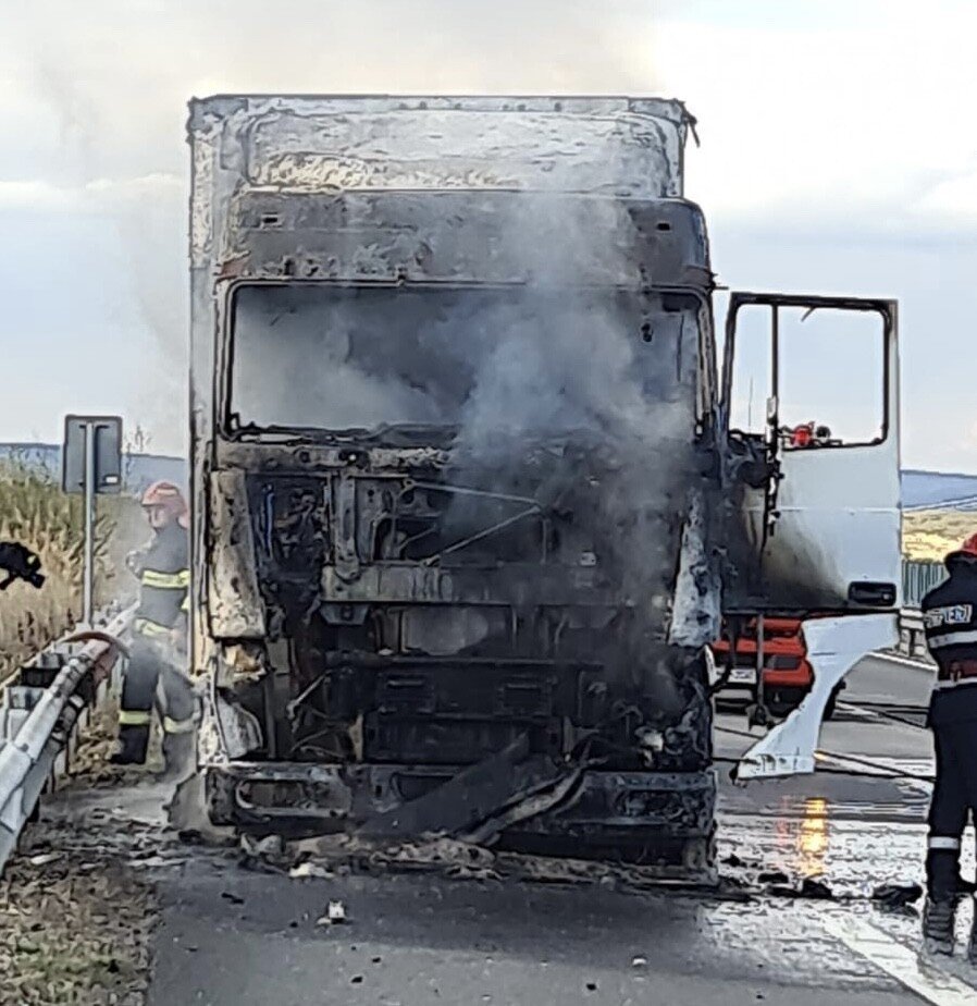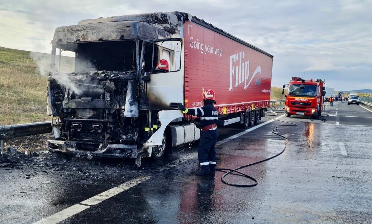 Un incendiu violent a izbucnit în urmă cu puțin timp la cabina unui autocamion ce se deplasa pe autostrada A1, între Săliște și Apoldu de Jos.
