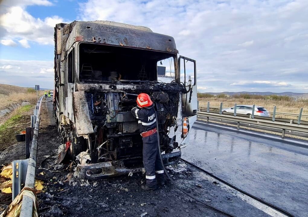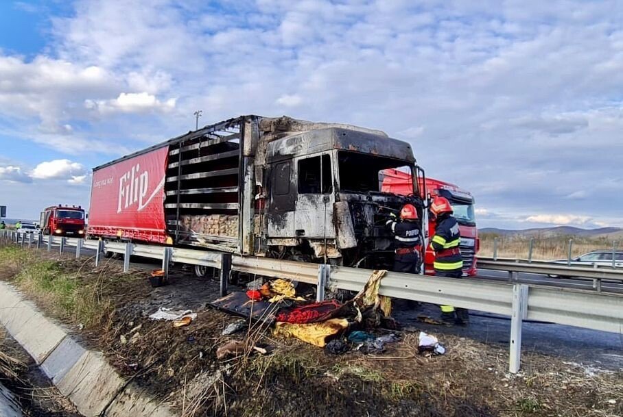 „Pompierii militari ai Stației Miercurea Sibiului au intervenit de urgență cu o autospecială de stingere, pe autostrada A1 în zona localității Aciliu, pentru lichidarea unui incendiu izbucnit la roata unui autocamion. La sosirea forțelor incendiul se manifesta generalizat atât la roata autocamionului cât și la capul tractor. Incendiul a fost lichidat prompt de către pompierii militari.Nu au fost semnalate victime. Cauza probabilă de izbucnire a incendiului este în curs de determinare.” a declarat Sg. maj. Andreea Ștefan