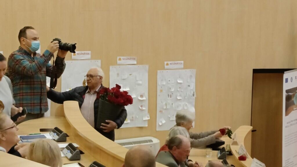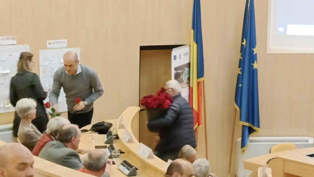 Daniela Bichiceanu (PSD), decanul de vârstă al consilierilor judeţeni din actualul mandat a împărţit trandafiri roşii doamnelor prezente în sală. El a urat tuturor consilierilor şi angajaţilor instituţiei „La mulţi ani”.