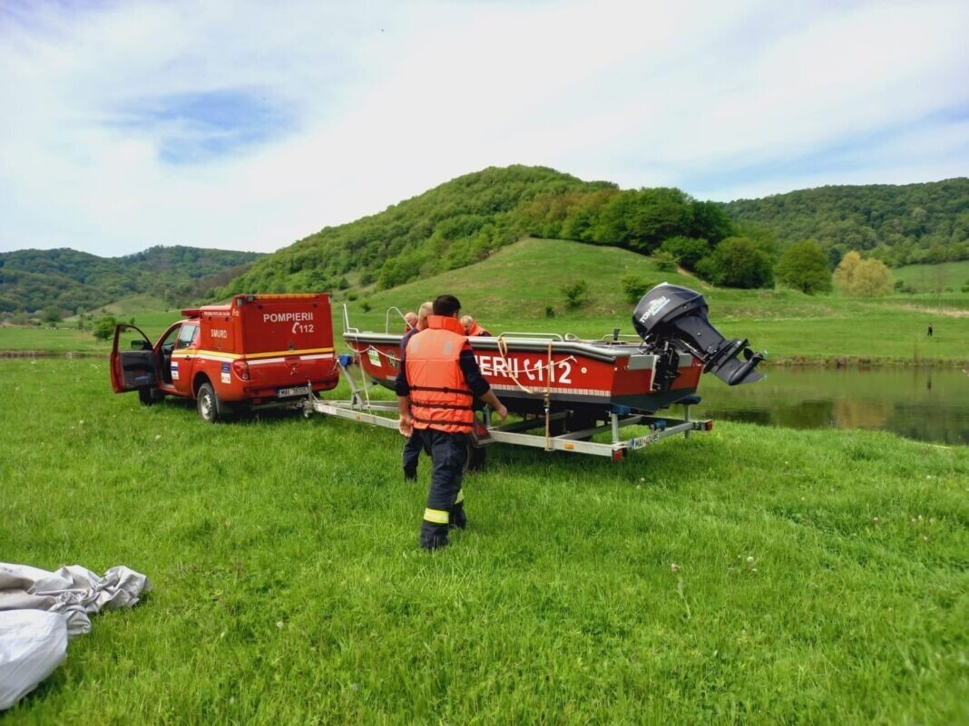 ACTUALIZARE: Trupul bărbatului de aproximativ 32 de ani a fost găsit de către echipajele de pompieri militari în lacul din localitatea Târnava.