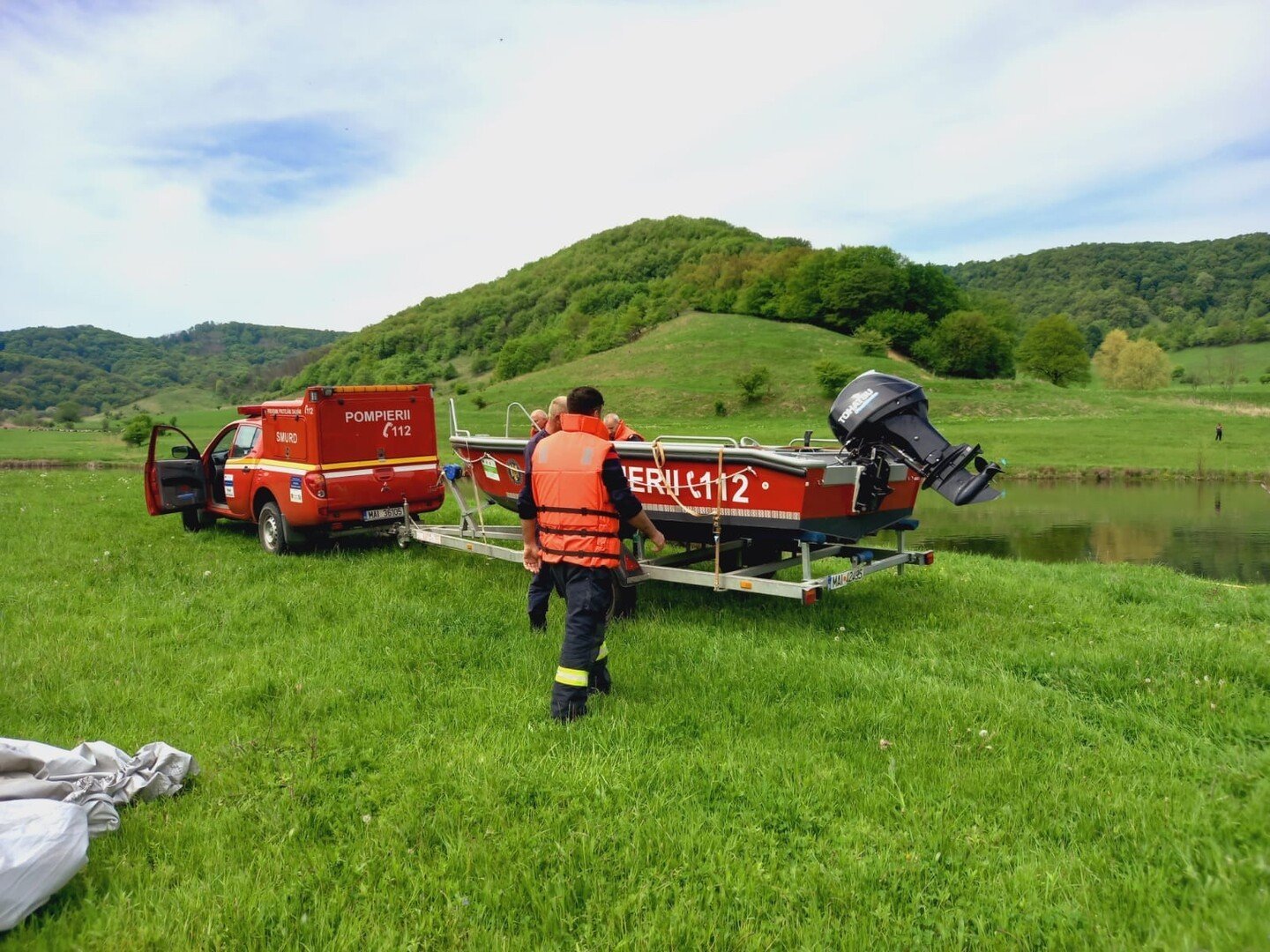 La fața locului s-a mobilizat prompt: o barcă pneumatică cu o autospecială de serviciu, o autospecială de stingere, o autospecială SMURD, dar și un echipaj scafandrii.
