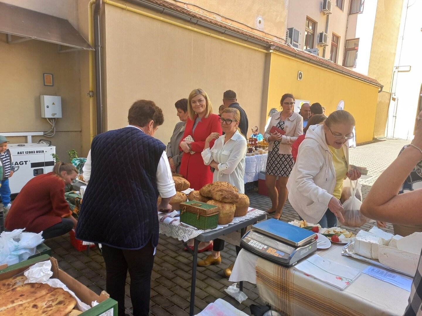 Oaspeții au fost întâmpinați în curtea interioară a instituției de producători locali din județul Sibiu și au putut degusta și achiziționa produse atestate cu mențiunea Produs Montan și Produs Tradițional.
