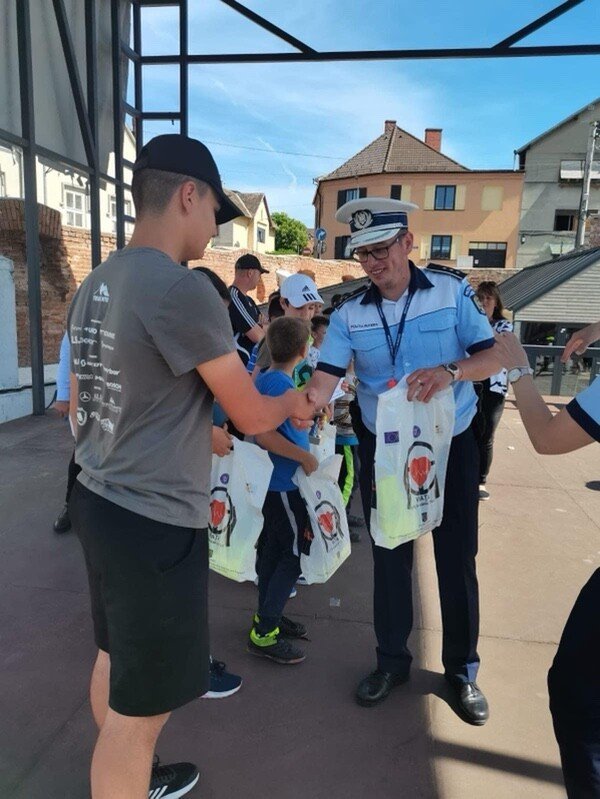 Inspectoratul Județean de Poliție Sibiu mulțumește Habermann Markt, Inspectoratul Școlar Județean Sibiu, ACS Velopol pentru premii și www.serviciirutiere.ro pentru marcajele rutiere și traseu
