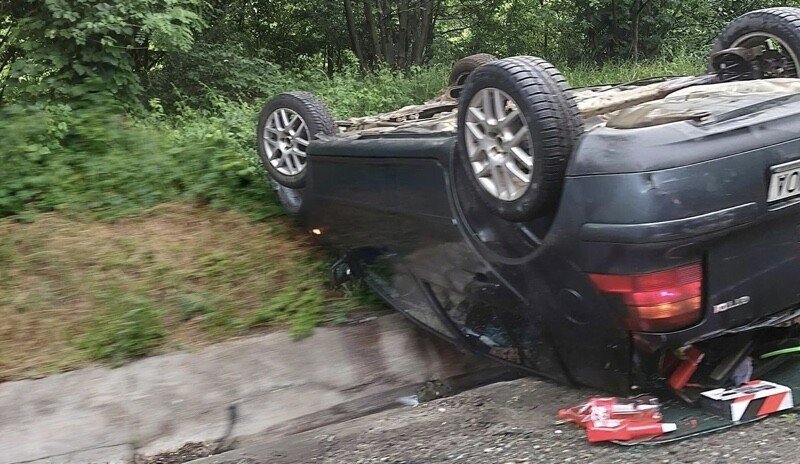Un conducător auto a pierdut controlul direcției de deplasare și s-a răsturnat în afara carosabilului, în timp ce rula pe Hula Bradului din Sibiu.