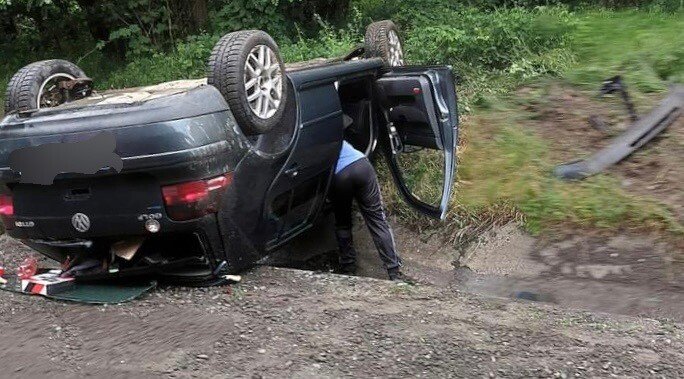 FOTO: Mașină răsturnată pe Hula Bradului din Sibiu